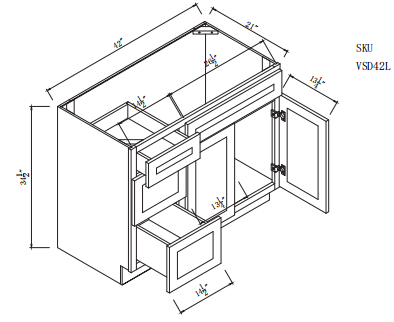 Vanity Sink Base Cabinet with Left Side Drawers 42"W